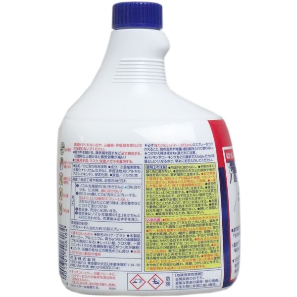 花王業務用 強力カビハイター つけかえ用 1000mLカビの根まで撃退!!●密着成分配合!厨房の壁面、浴室の壁、ゴムパッキン、シャワーホースなどの落としにくかった垂直面のカビも、泡が密着しとどまって効くことでしっかり退治します。