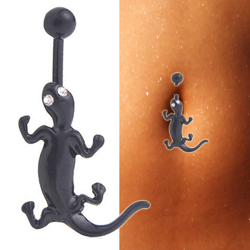 黒色のトカゲをデザインしたボーイッシュなへそピアス。