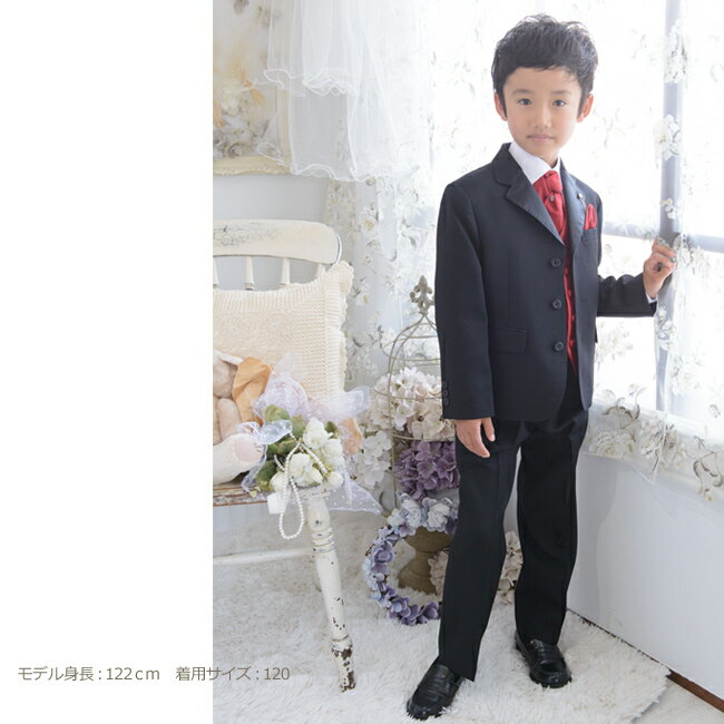) We provide kids formal wear rental. This item is rental, not sold.ジャケット サイズ 肩幅 袖丈 着丈 90 31cm 31cm 36cm 95 31.5cm 32cm 38cm 100 32cm 35cm 40cm 110 34.5cm 38cm 44cm 120 36cm 43cm 48cm 130 37cm 47cm 51cm 140 38cm 51cm 57cm 150 41cm 54cm 62cm 160 42cm 56cm 66cm ベスト サイズ 肩幅 胴囲 着丈 90 22cm 64cm 28cm 95 23cm 65cm 30cm 100 23cm 66cm 34cm 110 24cm 69cm 37cm 120 24cm 74cm 40cm 130 26cm 76cm 43cm 140 28cm 80cm 46cm 150 30cm 86cm 49cm 160 32cm 90cm 51cm パンツ サイズ ウエスト 股下 90 ~48cm 32cm 95 ~49cm 36cm 100 ~52cm 39cm 110 ~54cm 46cm 120 ~58cm 52cm 130 ~62cm 59cm 140 ~68cm 62cm 150 ~74cm 66cm 160 ~80cm 73cm 商品詳細情報 素材 ポリエステル カラー 黒、パーティーレッド コメント 結婚式のご参列など定番のスーツより少し格好よく決めたい時におすすめのデザインタキシードスーツのセットです。