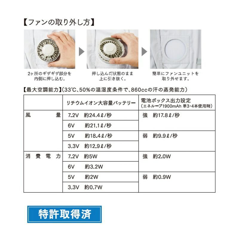 脱着が簡単なワンタッチファンで、作業着の洗濯も通常通りで大丈夫です。