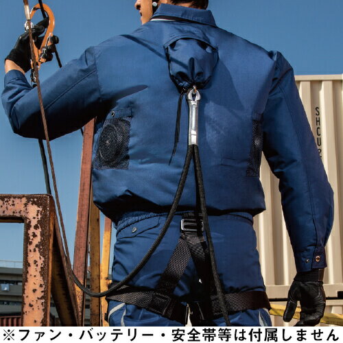 |商品名|ファン穴付き長袖ブルゾン 空調服 フルハーネス用 ファン無し 空調風神服|メーカー|サンエス|品番|KU90470F|カラー|3_ネイビー、4_ブルー、6_シルバー|サイズ|M、L、LL、XL、4L、5L|素材|交織トロピカル:綿25% ポリエステル75%|機能|背部ランヤード取り出し口、ファン脱落防止ネット、取り外し式フック掛けD環|サイズ表|単位:cm着丈肩巾袖丈胸囲M645054116L665256120LL685458124XL7056601324L7058581405L706058148|サイズ区分|メンズ|年間区分|春夏|備考|・ファン、バッテリー、ケーブルは別売りです炎天下の車内等、高温の場所に放置しないようご注意下さい※火気を扱う場所でのご注意溶接等の火花が飛ぶ場所などでは使用厳禁!!!溶接、たき火、ストーブ、鋳造現場、その他火花が飛ぶ場所などでは着用しないでください|デバイス対応メーカー|【サンエス】【ミズノ】【ビッグボーン】【アタックベース】【大川被服】【コーコス信岡】※必ず対応メーカーの商品の組み合わせでご使用ください。
