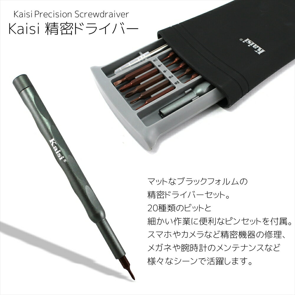 Kaisi 精密ドライバーセット ペン型 スリム 工具 コンパクト スライド式収納ケース 磁石 精密ピンセット ビット20種類 精密ドライバー 20種ビット 特殊ドライバー スマホ カメラ 眼鏡 修理 分解 DIY作業 携帯便利 ドライバー