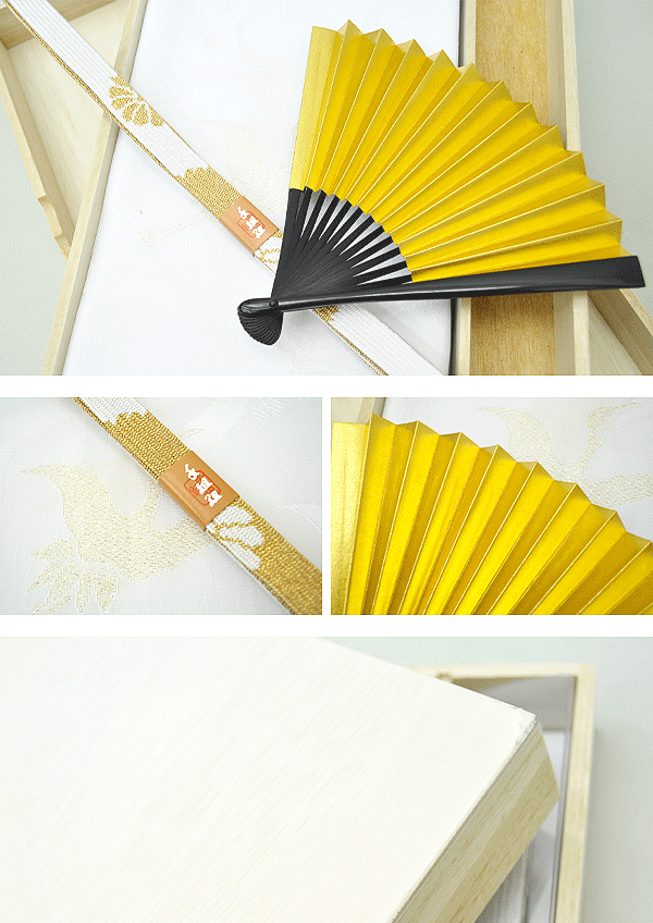 セット内容 帯締め・帯揚・末広(扇子) 化粧箱付きです。