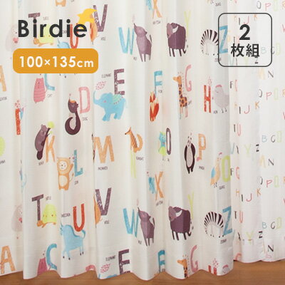 【サンプルあり】Birdie(バーディ) ものしりシリーズ 既製カーテン 子供部屋 キッズ かわいい ドレープ フック 女の子 男の子 タッセル 厚地 形状記憶 ユニベール 北欧 neore / ドウブツノナマエ 100×135cm 2枚組